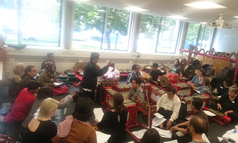 The group workshops are led by a professionally trained Gamelan musician with over 18 years of experience of teaching and performing Gamelan at all levels with Education, Community and Corporate groups and has undertaken extensive training including living and studying in Java, Indonesia with a Darmasiswa scholarship. A regular performer with the renowned Southbank Gamelan Players performing and touring internationally as well as facilitating workshops with Good Vibrations projects in prisons, secure hospitals and in the community.  A professional, fugamelan1n and accessible approach enables participants at all levels to be accommodated by adapting to the needs of the group.